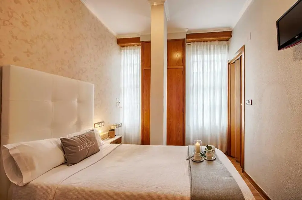 Hostal Zahara is located at Pardo Bajo 28, 15402 Ferrol, Spain. The establishment offers accommodations featuring a bar, restaurant, free WiFi, and non-smoking rooms. Guests can enjoy proximity to several attractions including Moncloa at 100 meters, La Guagua at 450 meters, and Museo Naval at 250 meters. Nearby landmarks like Garita Beach are approximately 3.2 kilometers away while A Coruña Airport lies 22 kilometers from the hostal. Reviews highlight the welcoming atmosphere, thoughtful decoration, and convenient location suitable for solo travelers. Additional nearby points of interest include Isabel Muíños Ruiz within 300 meters, Caranza at 2.1 kilometers, and Santiago de Compostela Airport accessible via a 65 kilometer drive.